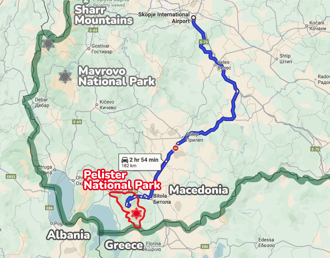To get to Pelister National Park, fly into Skopje International Airport (SKP), which has connections to major cities throughout Europe.