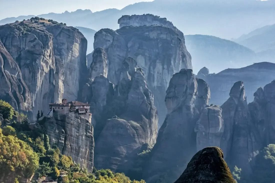 Meteora Pillars: These unique rock formations rise from the Plain of Thessaly and provide a challenging and picturesque setting for climbing, feeling like something from a fairytale.